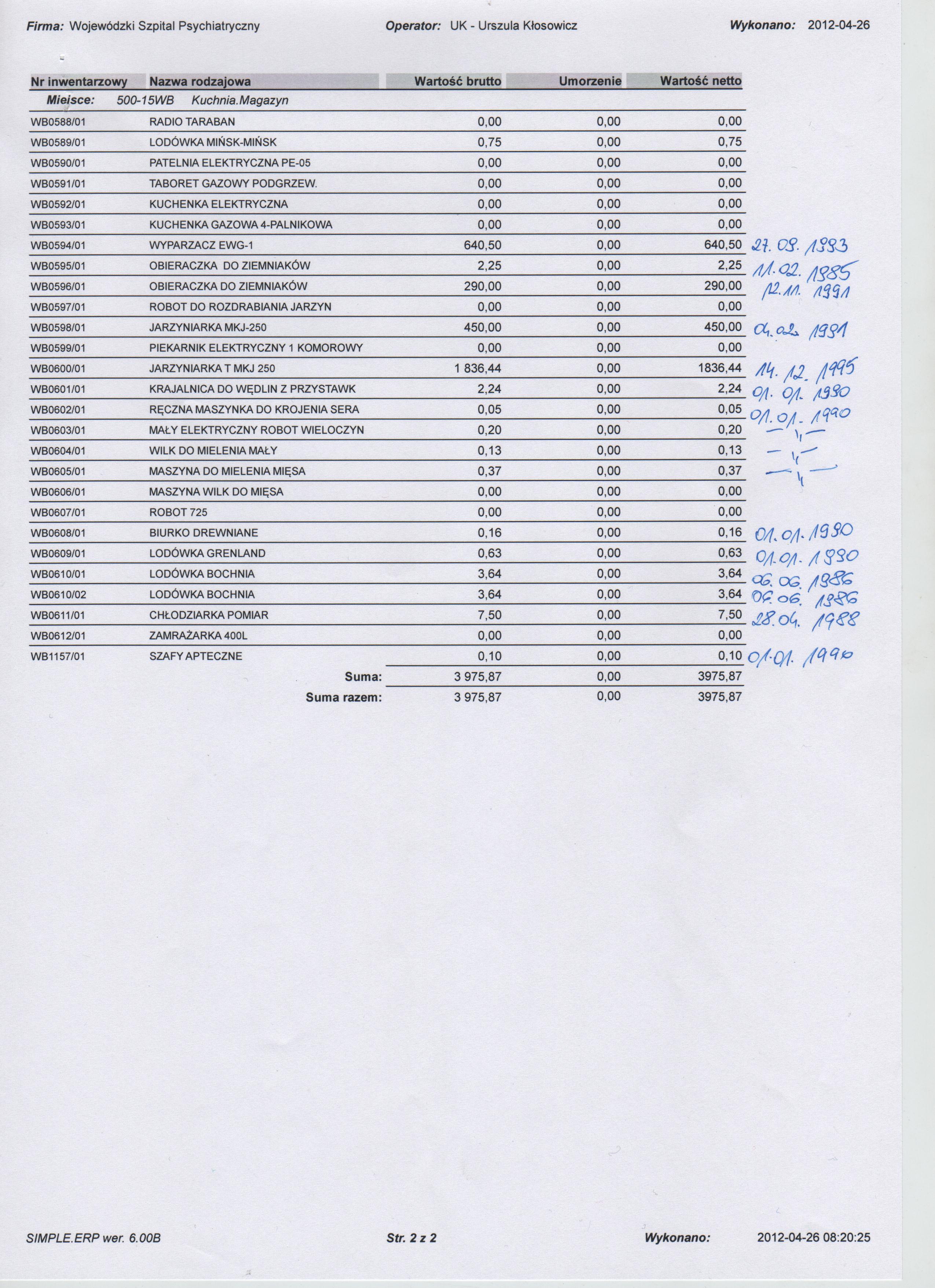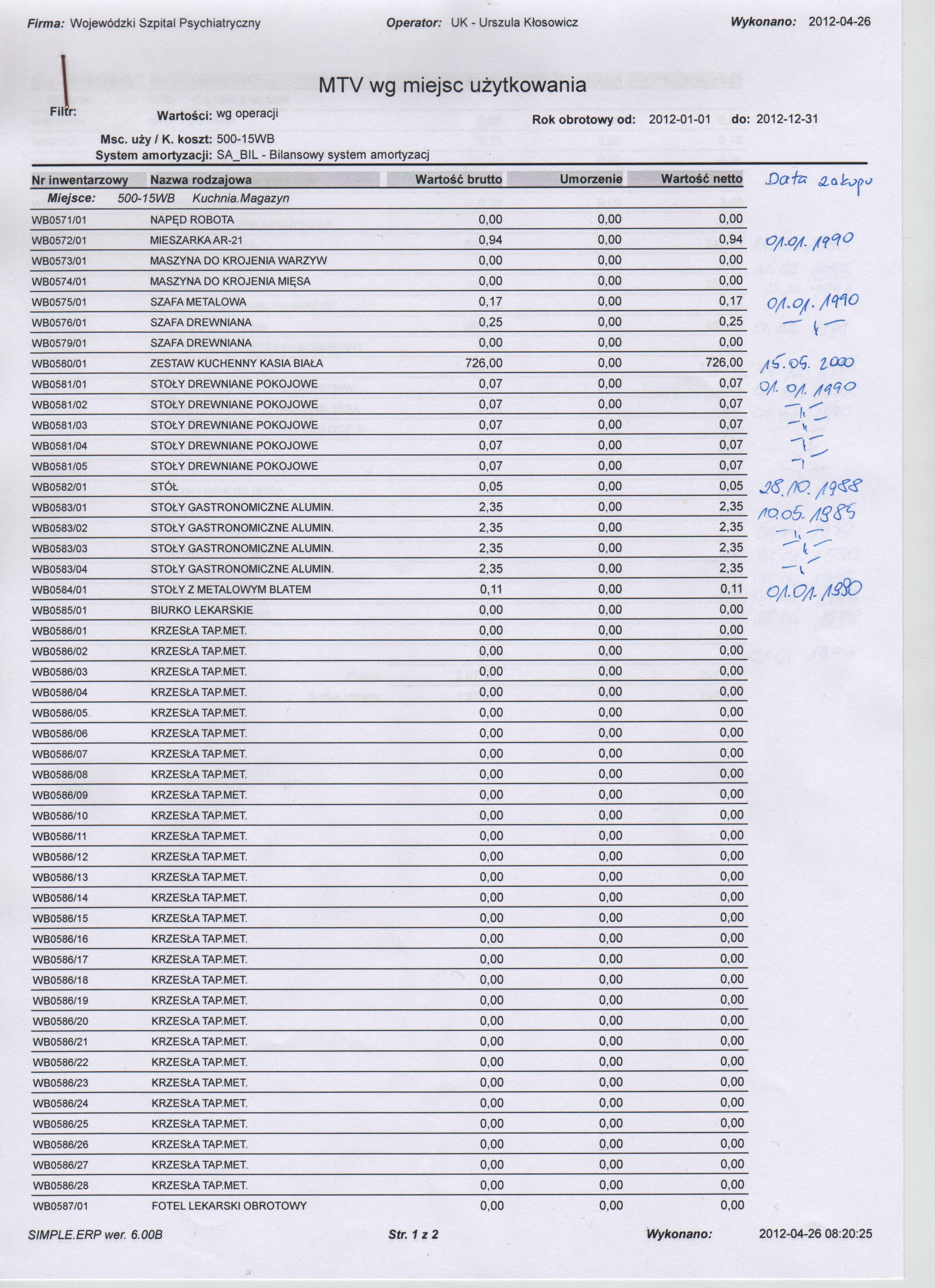 - Rejestr sprzętu: