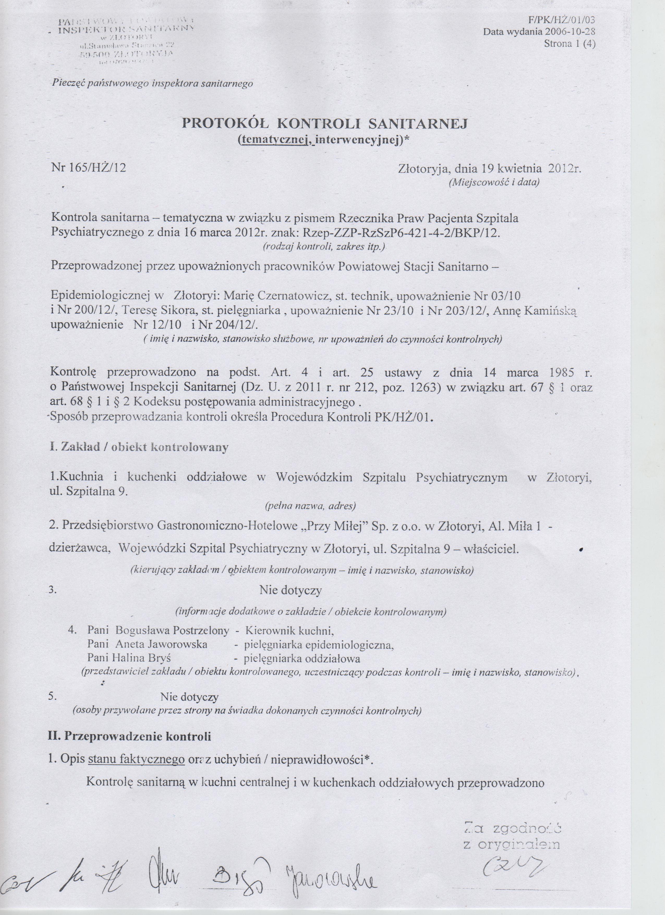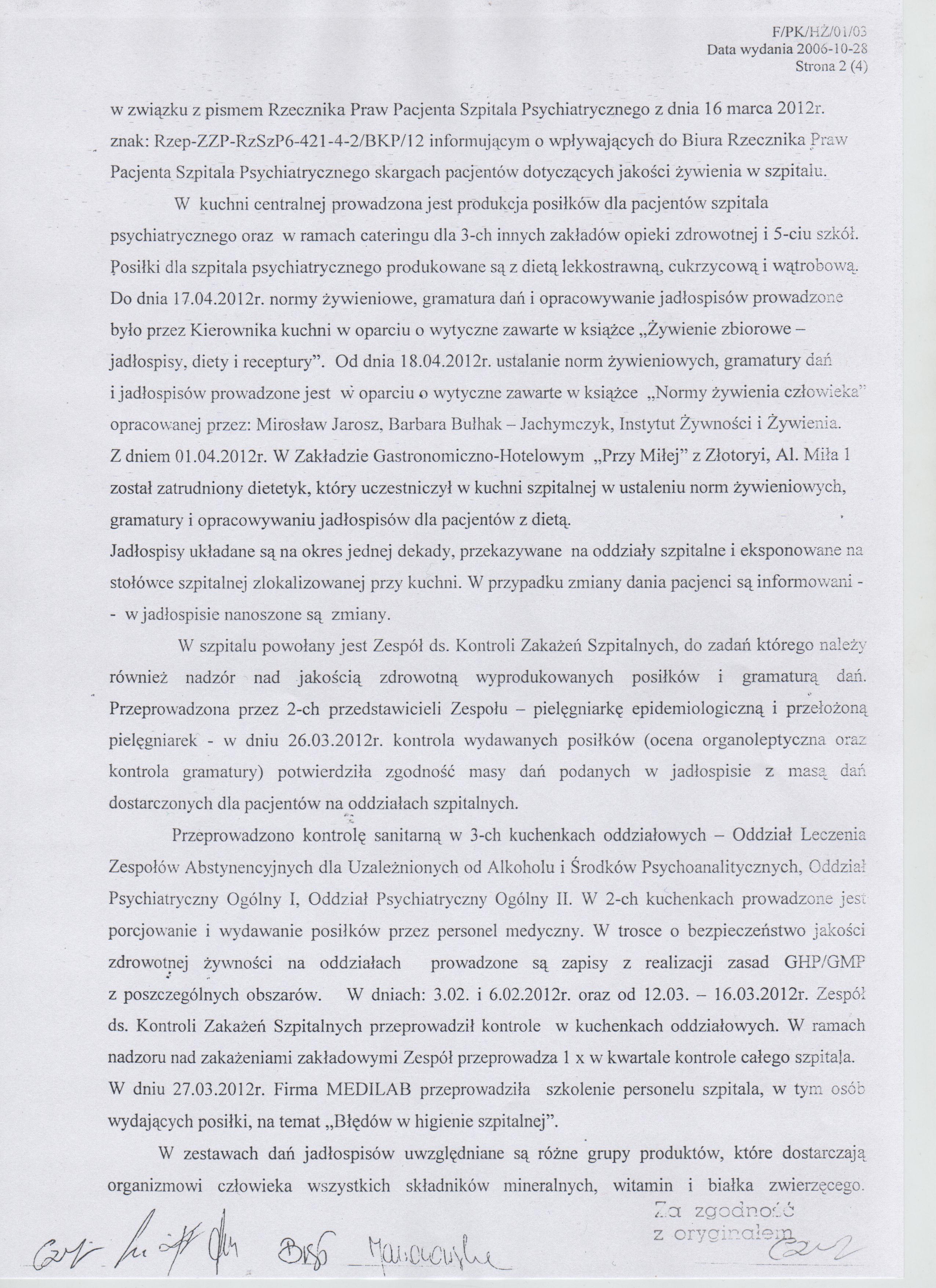 "Świadczenie usług gastronomicznych dla pacjentów Wojewódzkiego Szpitala Psychiatrycznego w Złotoryi i Ośrodka Psychiatrycznej i Odwykowej Opieki Zdrowotnej w Legnicy, wraz z dzierżawą pomieszczeń kuchennych"